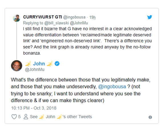 He further continued, ‘‘’Google wants natural links, links you do not go out specifically and “make.” If you make links than by definition, those links are not natural and thus against Google’s guidelines’’.